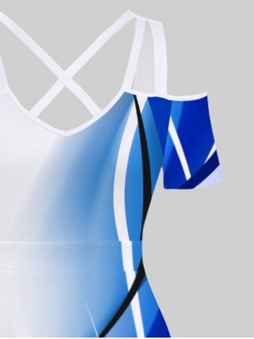 Plus Size Ombre Colorblock Light Beam Curve Print Cold Shoulder Crisscross Maxi Dress - Multi-a - 6x