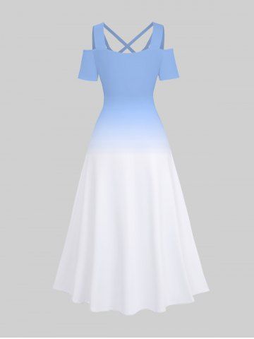 Plus Size Ombre Colorblock Tropical Leaf Flower Sun Print Cold Shoulder Crisscross Hawaii Maxi Dress - Multi-a - M