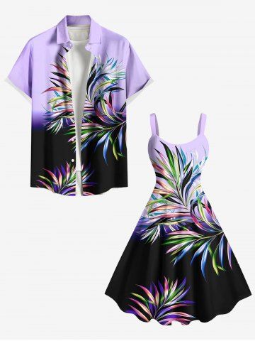 Plus Size Ombre Colorblock Tropical Leaf Print Hawaii Tank Dress - Light Purple - 2x