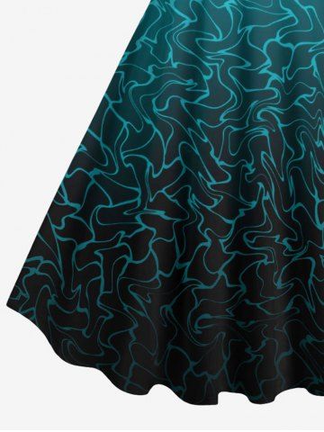 Plus Size Ombre Colorblock Water Ripples Print Hawaii Tank Dress - Green - 3x