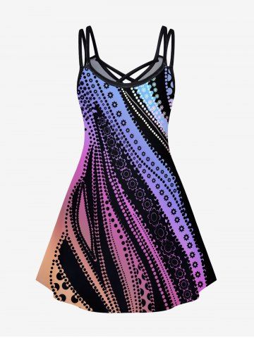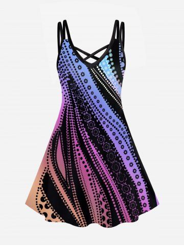 Graphic Dresses > Plus Size Ombre Crisscross A Line Printed Sleeveless Dress