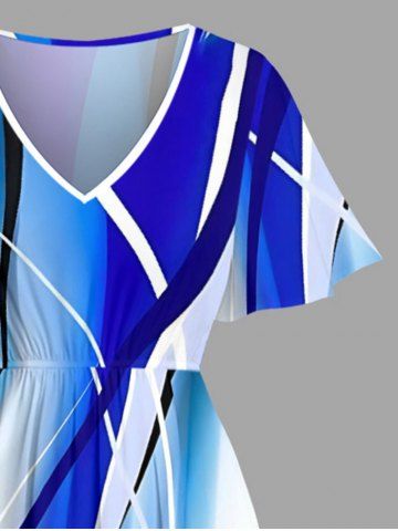 Plus Size Ombre Curve Print Hawaii Split Pocket A Line Midi Dress - Blue - S