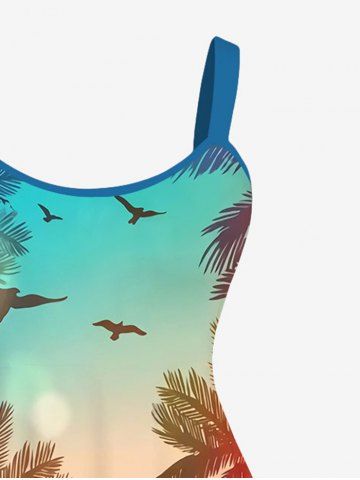 Graphic Dresses > Plus Size Ombre Dusk Coconut Tree Swallow Print Backless Hawaii A Line Tank Dress