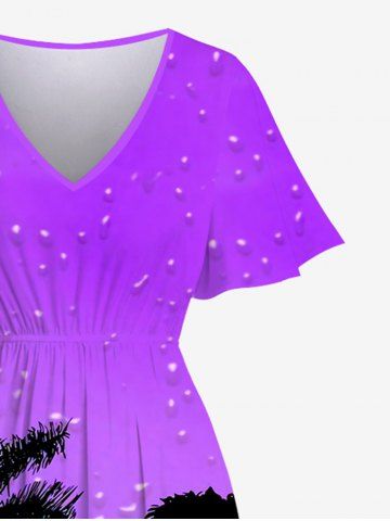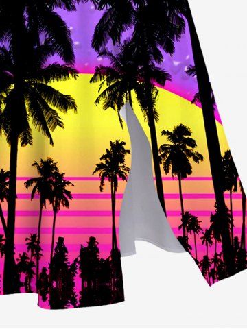 Plus Size Ombre Dusk Galaxy Coconut Tree Print Hawaii Split A Line Dress - Purple - L