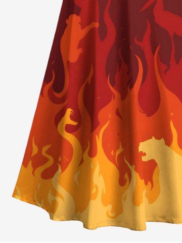 Plus Size Ombre Fire Flame Print Cold Shoulder Crisscross A Line Maxi Dress - Red - Xxs
