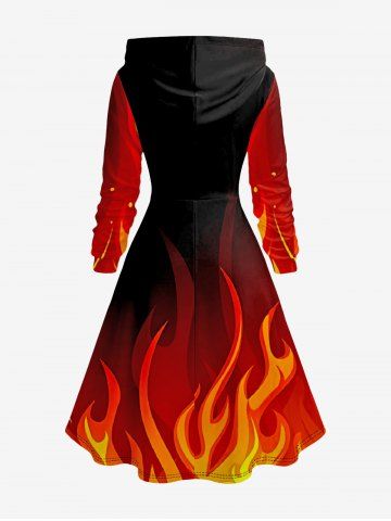Graphic Dresses > Plus Size Ombre Fire Flame Print Lace Up Hooded A Line Long Sleeves Dress