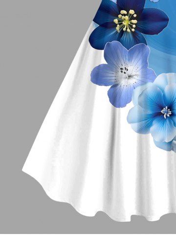 Plus Size Ombre Floral Ink Painting Print Hawaii A Line Tank Dress - Blue - Xs