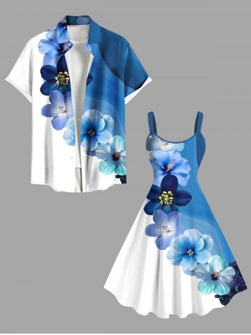 Plus Size Ombre Floral Ink Painting Print Hawaii A Line Tank Dress - Blue - L