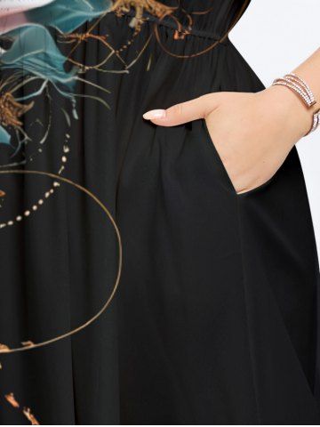Plus Size Ombre Floral Leaf Branch Print Hawaii Split Pocket A Line Midi Dress - Black - S