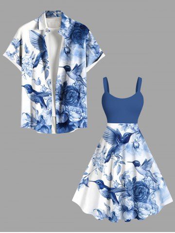 Graphic Dresses > Plus Size Ombre Floral Leaves Bird Print Hawaii A Line Tank Dress