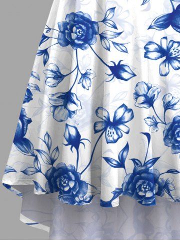 Plus Size Ombre Flower Leaf Branch Print Hawaii High Low Asymmetric Cami Dress - Blue - M