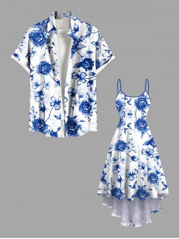 Plus Size Ombre Flower Leaf Branch Print Hawaii High Low Asymmetric Cami Dress - Blue - 5x