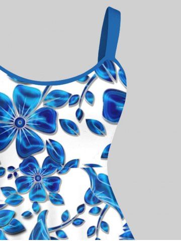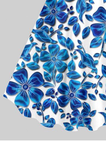 Plus Size Ombre Floral Leaves Print Hawaii A Line Tank Dress - Blue - 2x