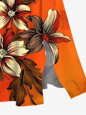 Plus Size Ombre Flower Leaf Print Hawaii Split Pocket A Line Midi Dress - Orange - S