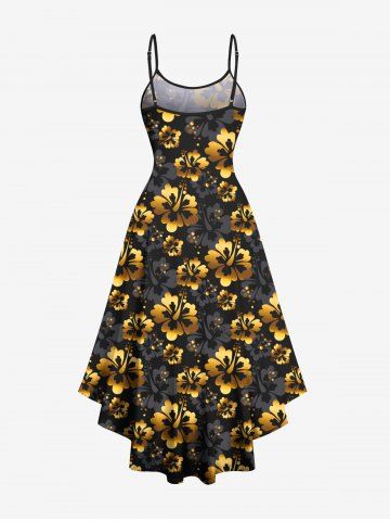Graphic Dresses > Plus Size Ombre Floral Print Hawaii High Low Asymmetric A Line Cami Dress