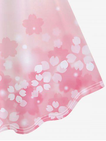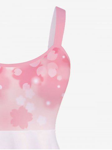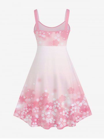 Plus Size Ombre Floral Print Valentines A Line Tank Dress - Light Pink - 1x