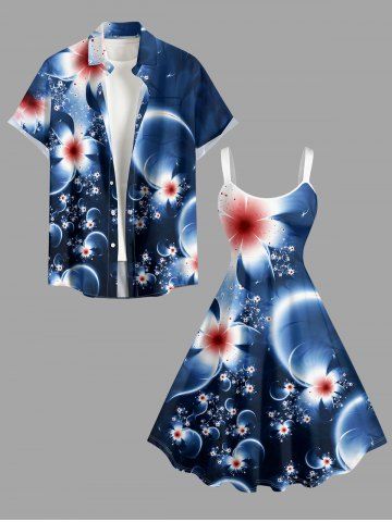 Plus Size Ombre Flower Bubble Print Hawaii A Line Dress - Deep Blue - Xxs