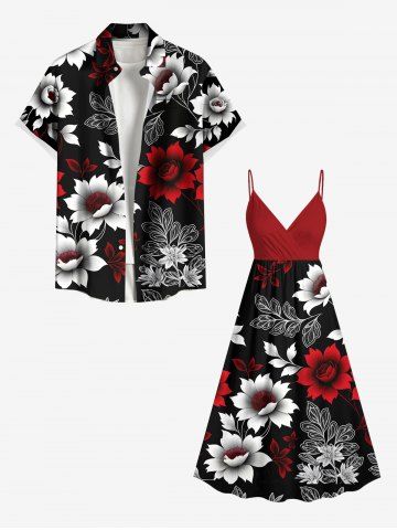 Plus Size Ombre Flower Leaf Branch Print Hawaii Surplice A Line Cami Dress - Black - 4x