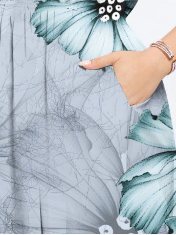 Plus Size Ombre Flower Print Hawaii Split Pocket A Line Midi Dress - Light Gray - L