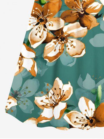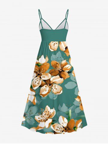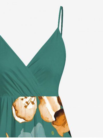 Plus Size Ombre Flower Print Hawaii Surplice A Line Cami Dress - Green - Xs