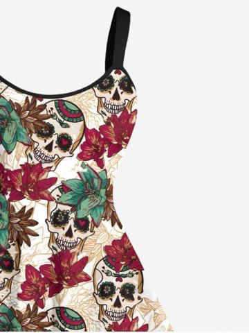 Graphic Dresses > Plus Size Ombre Flower Skull Print Hawaii A Line Tank Dress