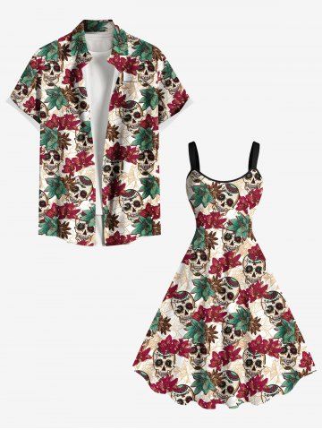 Graphic Dresses > Plus Size Ombre Flower Skull Print Hawaii A Line Tank Dress