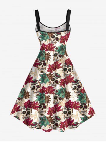 Graphic Dresses > Plus Size Ombre Flower Skull Print Hawaii A Line Tank Dress