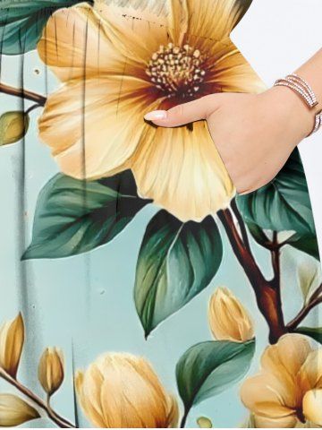 Graphic Dresses > Plus Size Ombre Flowers Leaf Print Split Hawaii Midi Dress