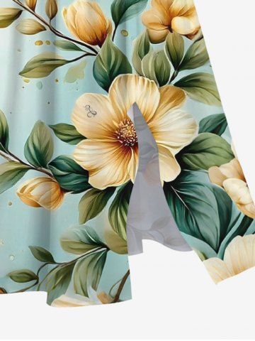 Graphic Dresses > Plus Size Ombre Flowers Leaf Print Split Hawaii Midi Dress