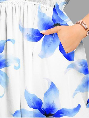 Plus Size Ombre Flowers Print Split Hawaii Midi Dress - Blue - 2x