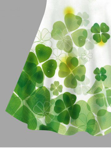 Plus Size Ombre Four Leaf Clover Print Hawaii St. Patrick's Day Crisscross A Line Cami Dress - White - 3x