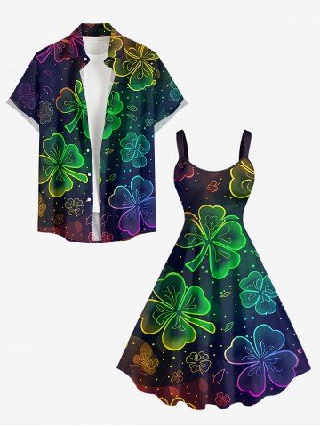 Plus Size Ombre Four Leaf Clover Print St. Patrick's Day A Line Dress - Concord - Xs