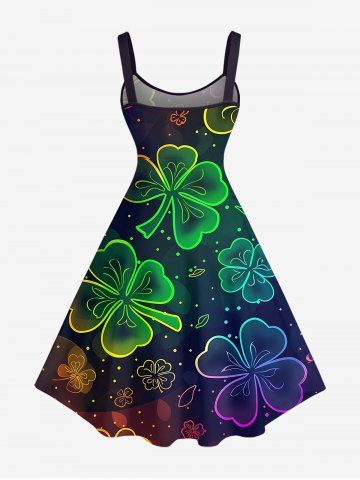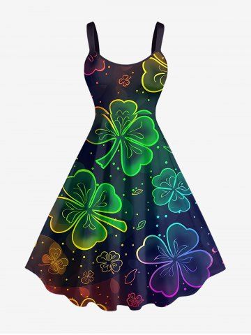 Graphic Dresses > Plus Size Ombre Four Leaf Clover Print St. Patrick's Day A Line Dress