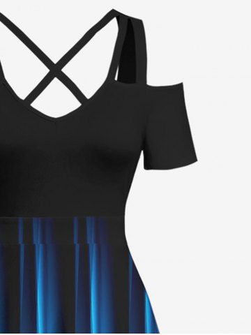 Plus Size Ombre Glitter Light Beam 3D Print Cold Shoulder Crisscross Hawaii Maxi Dress - Sky Blue - 3x
