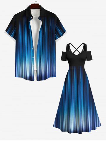 Ombre Glitter Light Beam 3D Print Plus Size Matching Hawaii Beach Outfit For Couples