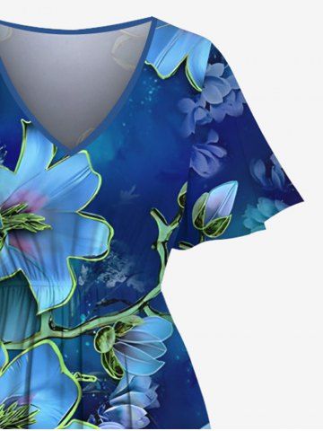 Plus Size Ombre Hibiscus Flower Print Hawaii Split Pocket A Line Midi Dress - Blue - 4x