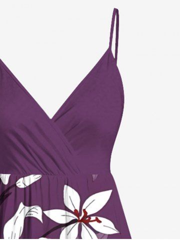 Plus Size Ombre Hibiscus Flower Print Hawaii Surplice A Line Cami Dress - Purple - S