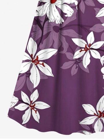 Plus Size Ombre Hibiscus Flower Print Hawaii Surplice A Line Cami Dress - Purple - 3x