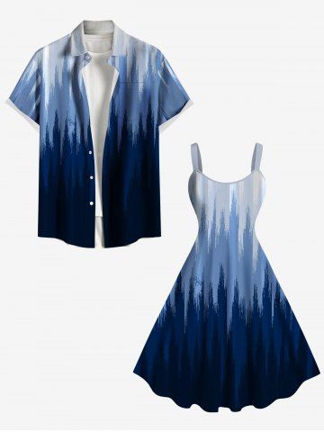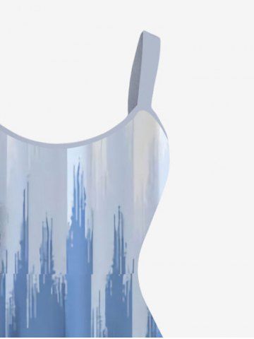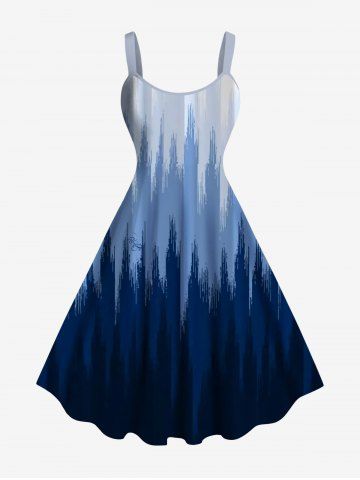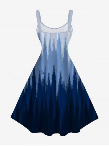 Plus Size Ombre Light Beam Print Hawaii A Line Tank Dress - Deep Blue - 2x
