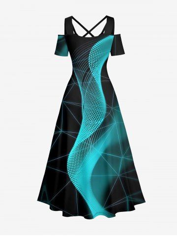 Graphic Dresses > Plus Size Ombre Lightwave Print Hawaii Cold Shoulder Crisscross A Line Maxi Dress