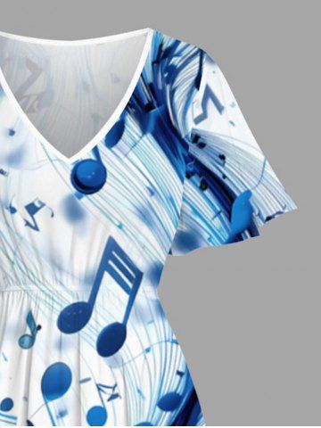 Plus Size Ombre Music Symbol Print Hawaii Split Pocket A Line Midi Dress - White - 6x