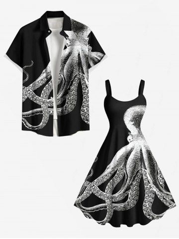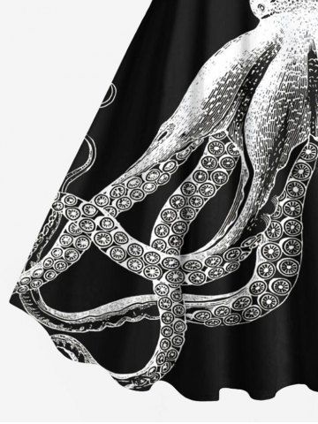 Plus Size Ombre Octopus Print Hawaii A Line Tank Dress - Black - S
