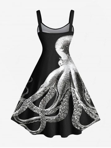 Graphic Dresses > Plus Size Ombre Octopus Print Hawaii A Line Tank Dress