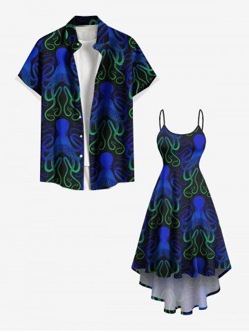 Graphic Dresses > Plus Size Ombre Octopus Print Hawaii High Low Asymmetric Cami Dress