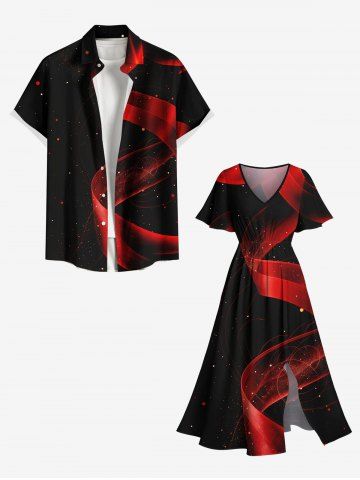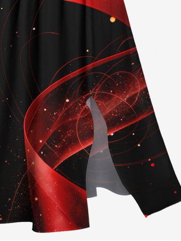 Plus Size Ombre Ribbon Galaxy Print Hawaii Split Pocket A Line Midi Dress - Black - 6x