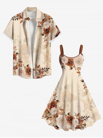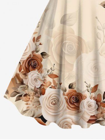 Graphic Dresses > Plus Size Ombre Rose Flower Leaf Branch Print Hawaii A Line Tank Dress