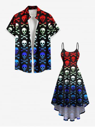 Graphic Dresses > Plus Size Ombre Skull Bone Print Hawaii High Low Asymmetric Cami Dress