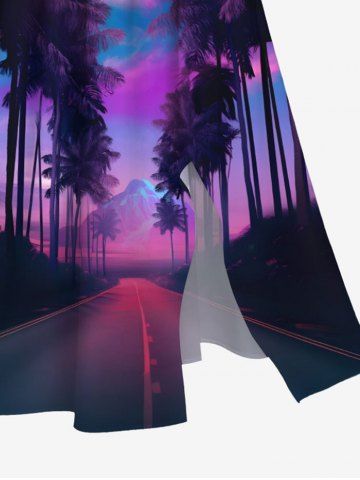 Plus Size Ombre Sky Coconut Tree Print Split Hawaii Midi Dress - Purple - S