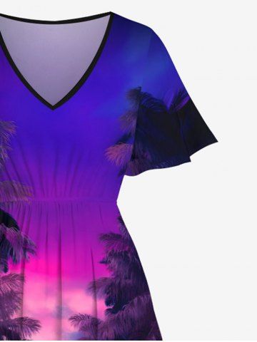 Plus Size Ombre Sky Coconut Tree Print Split Hawaii Midi Dress - Purple - 2x