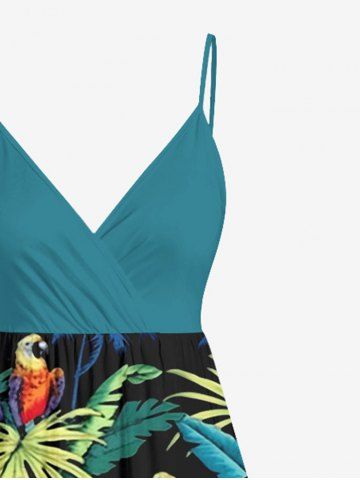 Graphic Dresses > Plus Size Ombre Tropical Leaf Parrot Print Hawaii Surplice A Line Cami Dress